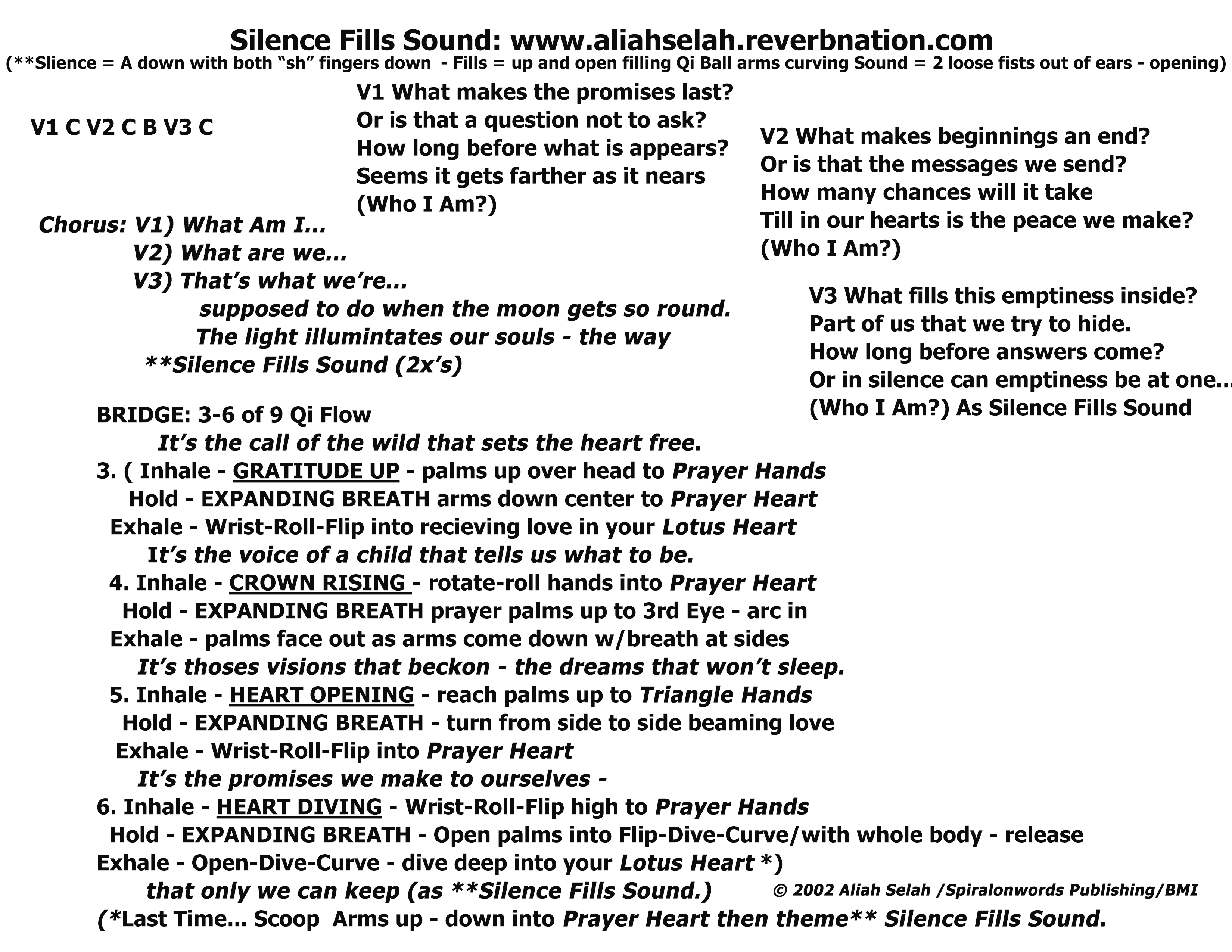 "Silence Fills Sound" is the 3-6 of the 9 Qi Flow)